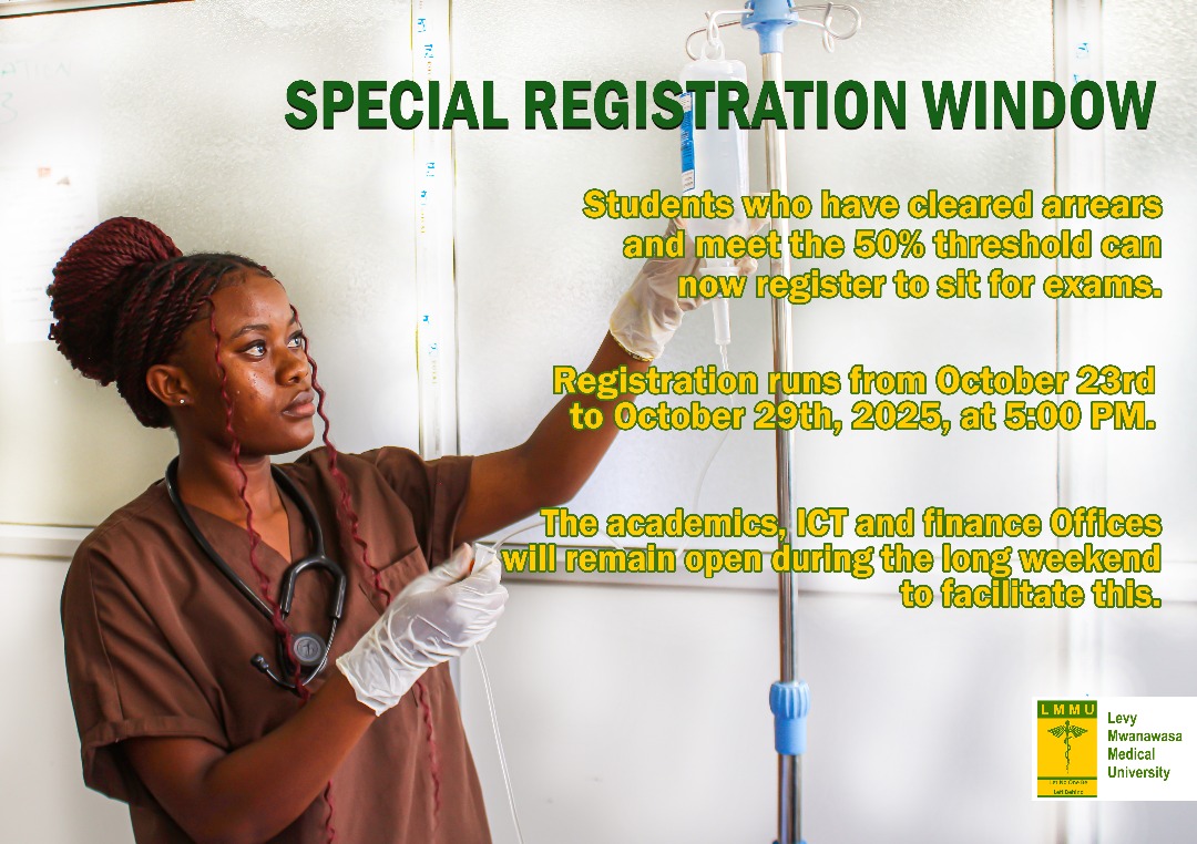 The Levy Mwanawasa Medical University says it will allow all students who have cleared areas of and meet up to 50 percent threshold to register and sit for examinations.